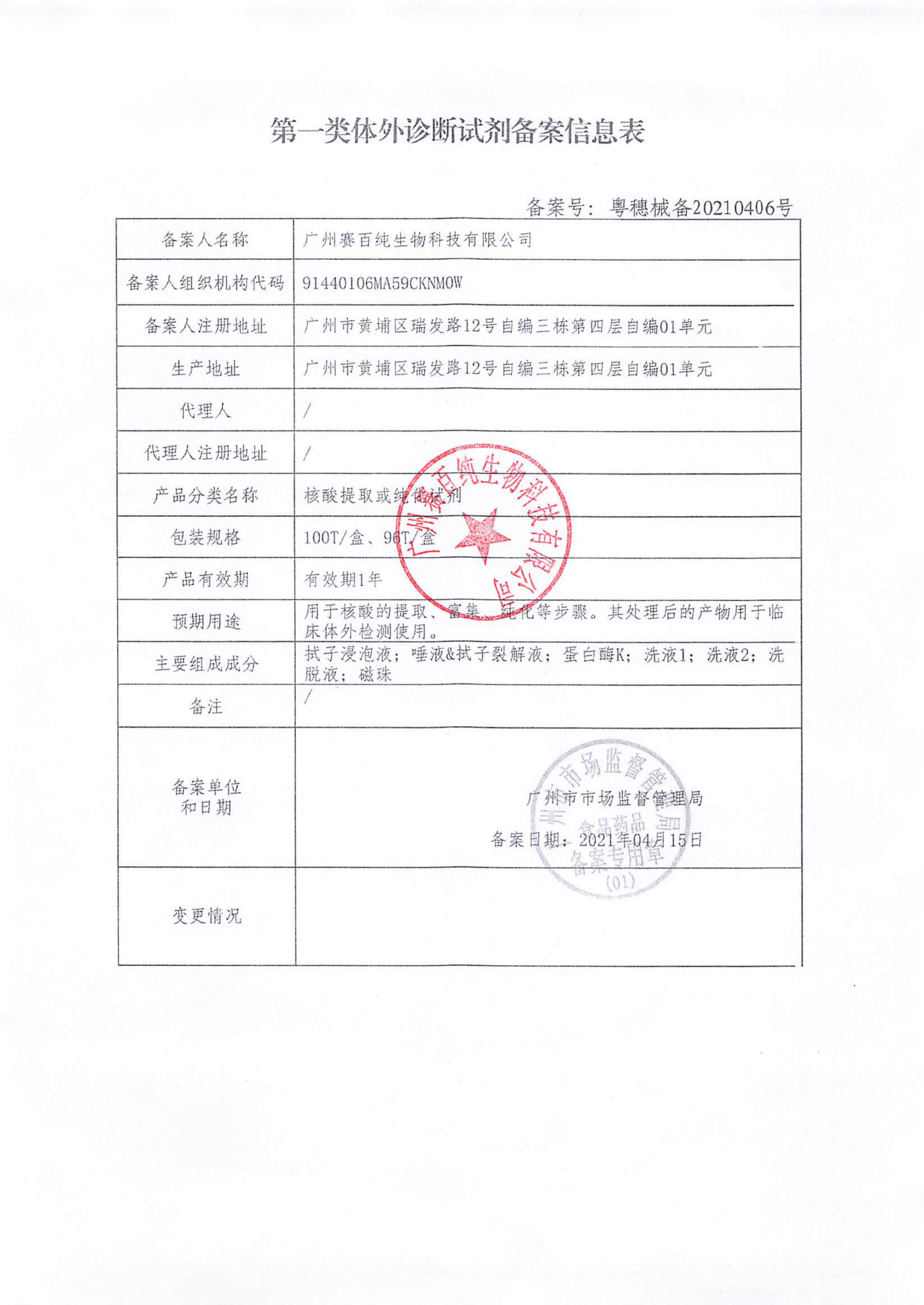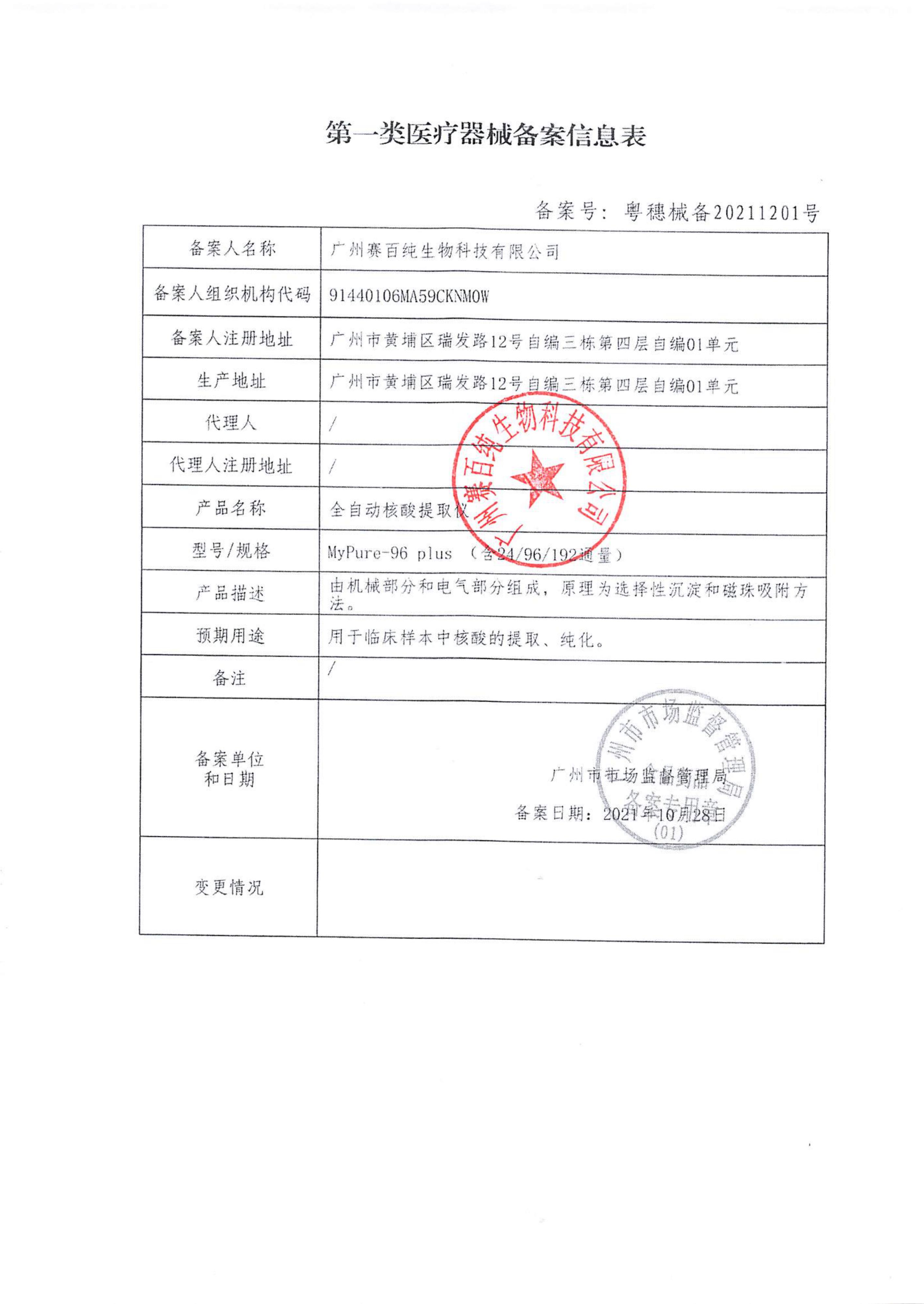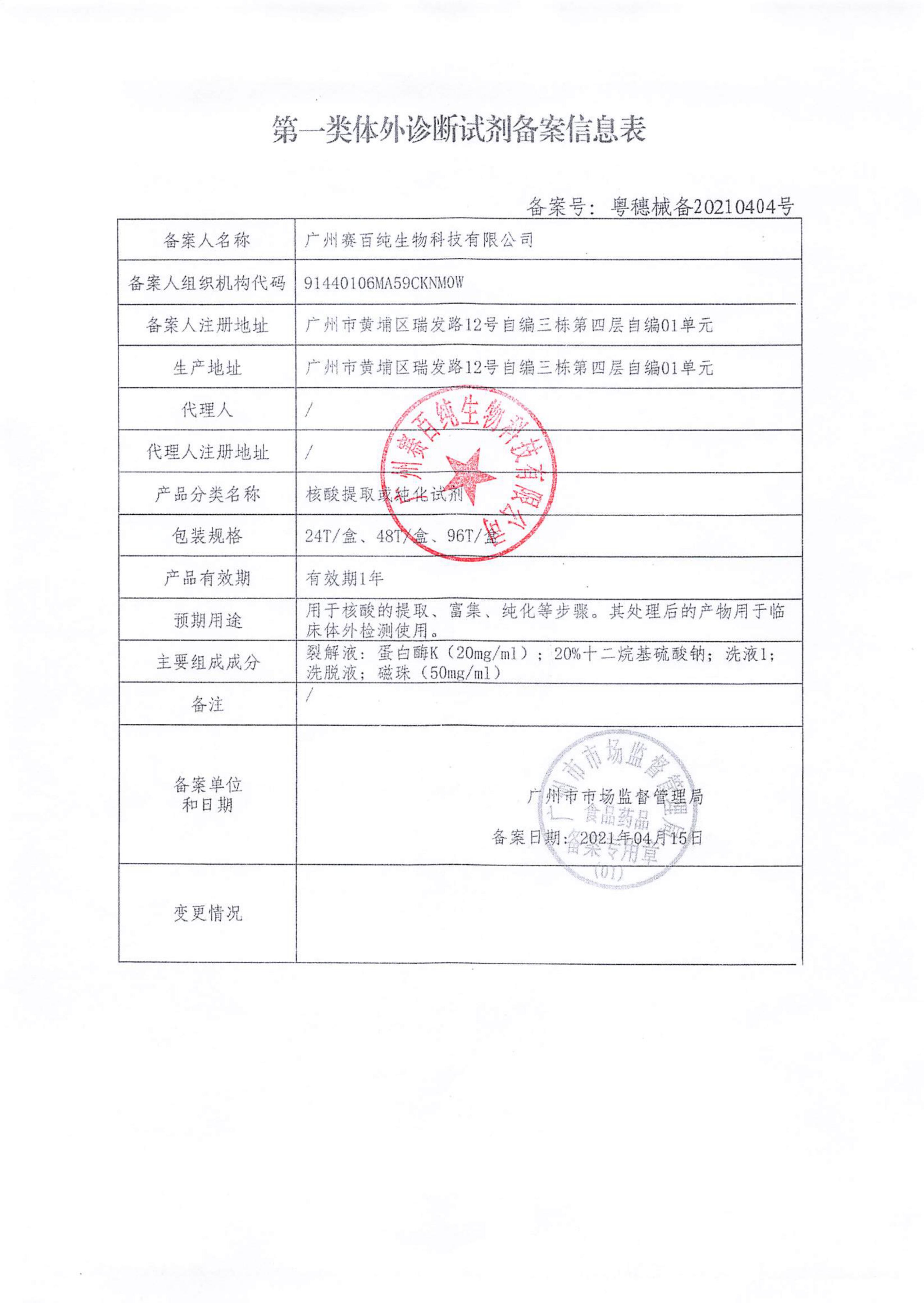 第一類體外診斷試劑備案信息表