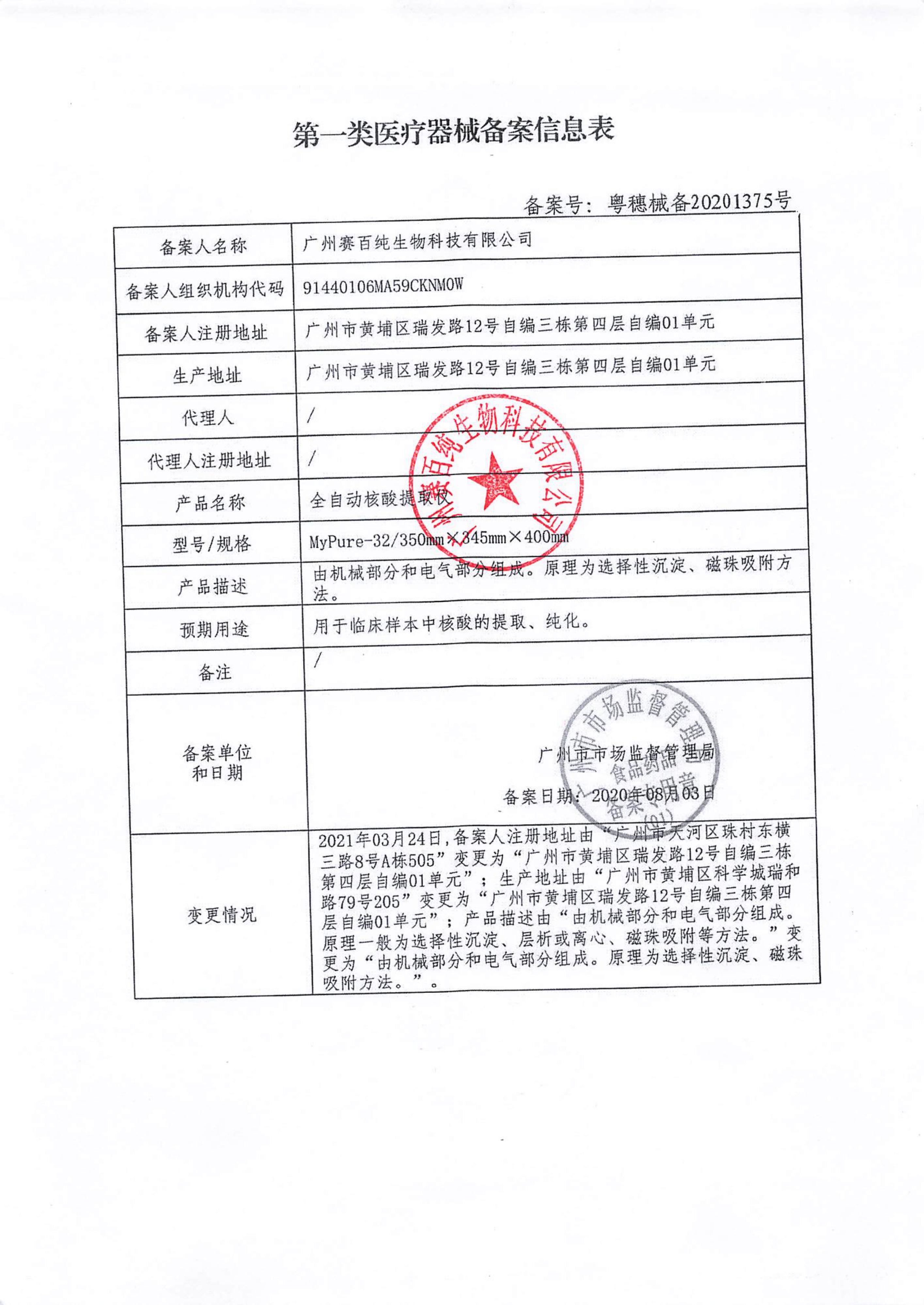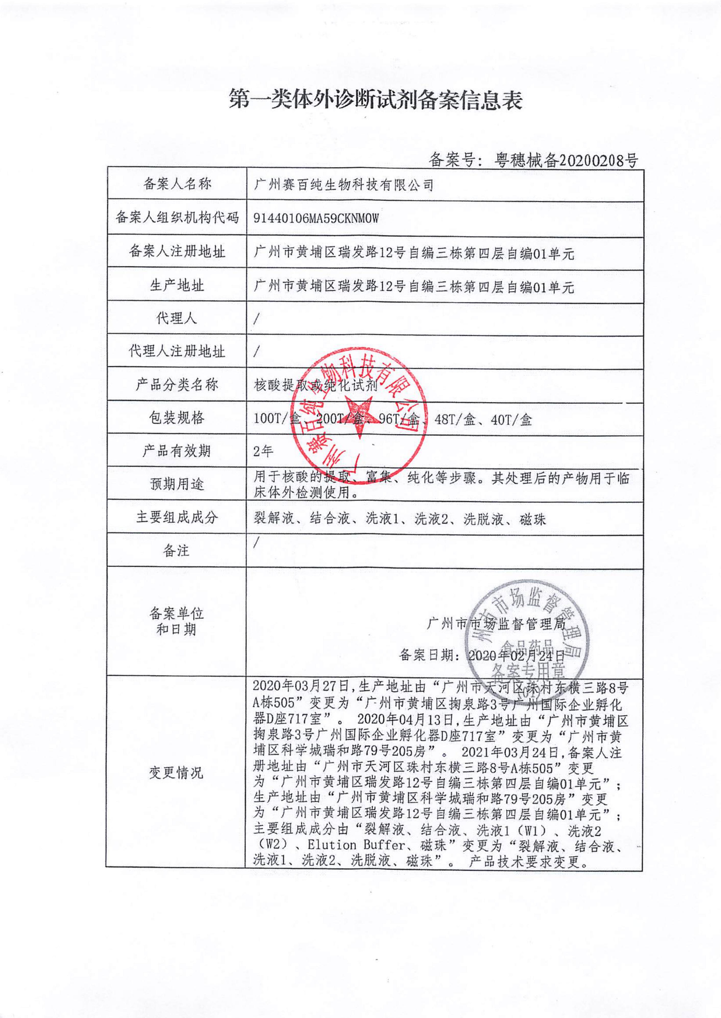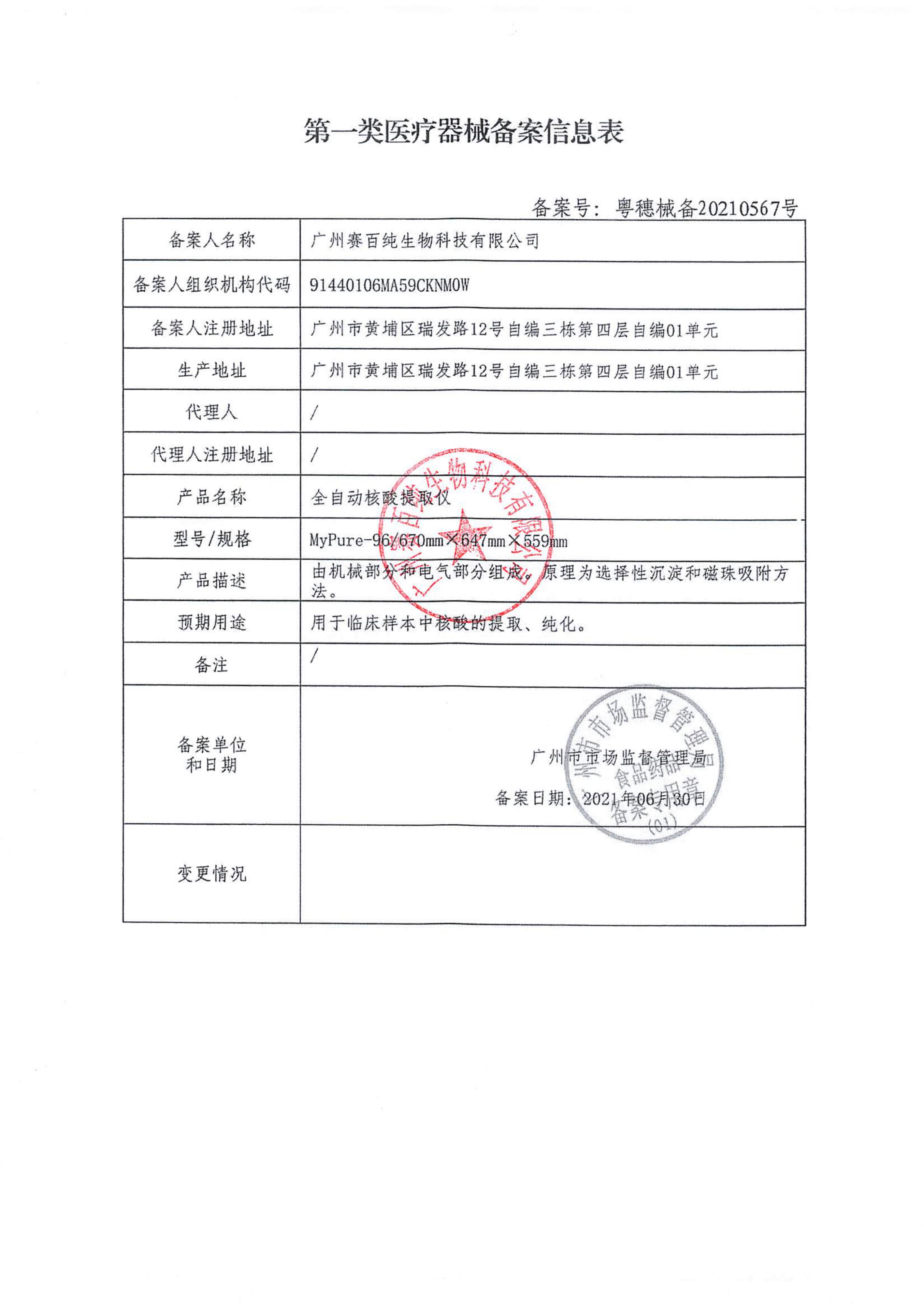 第一類體外診斷試劑備案信息表