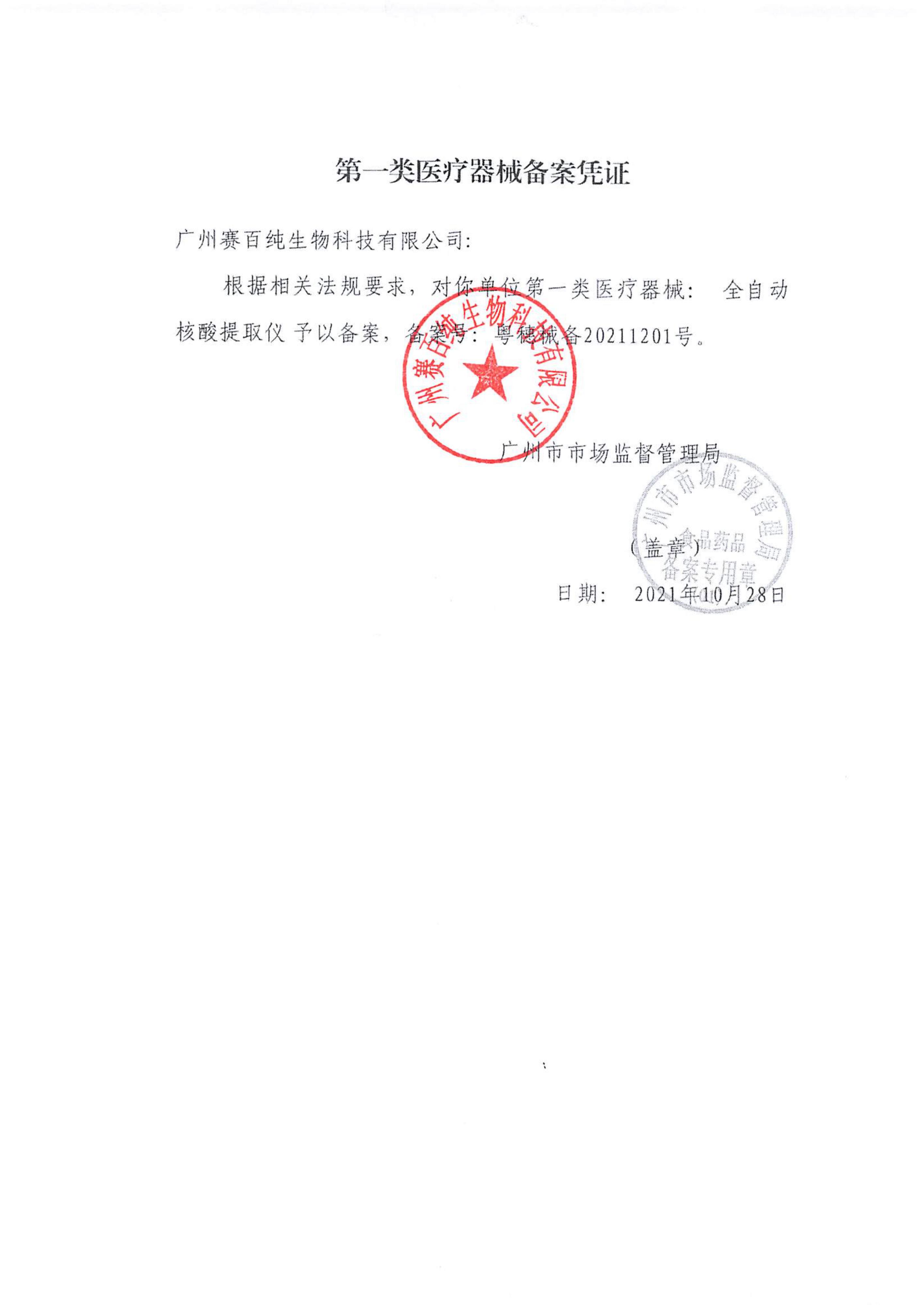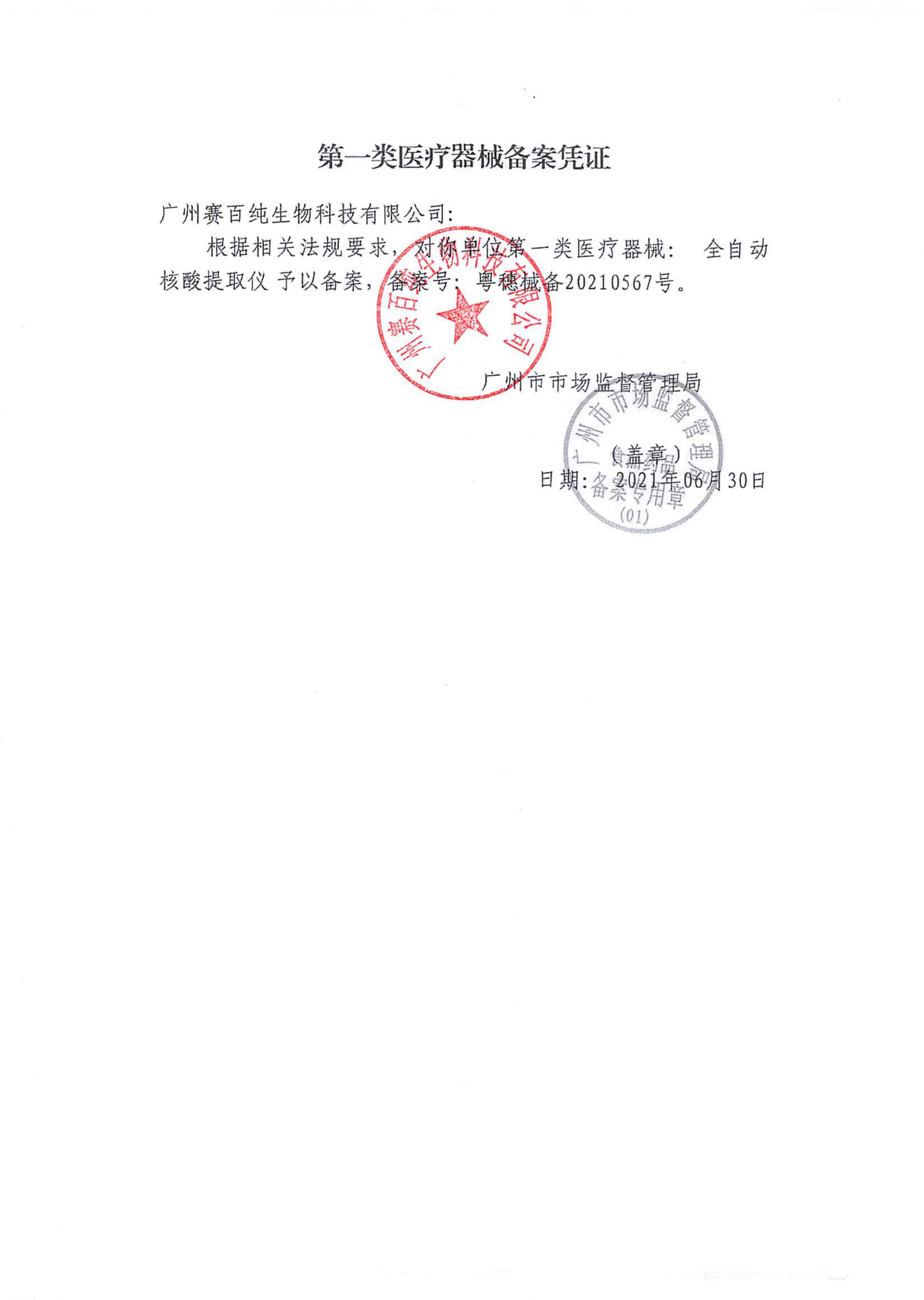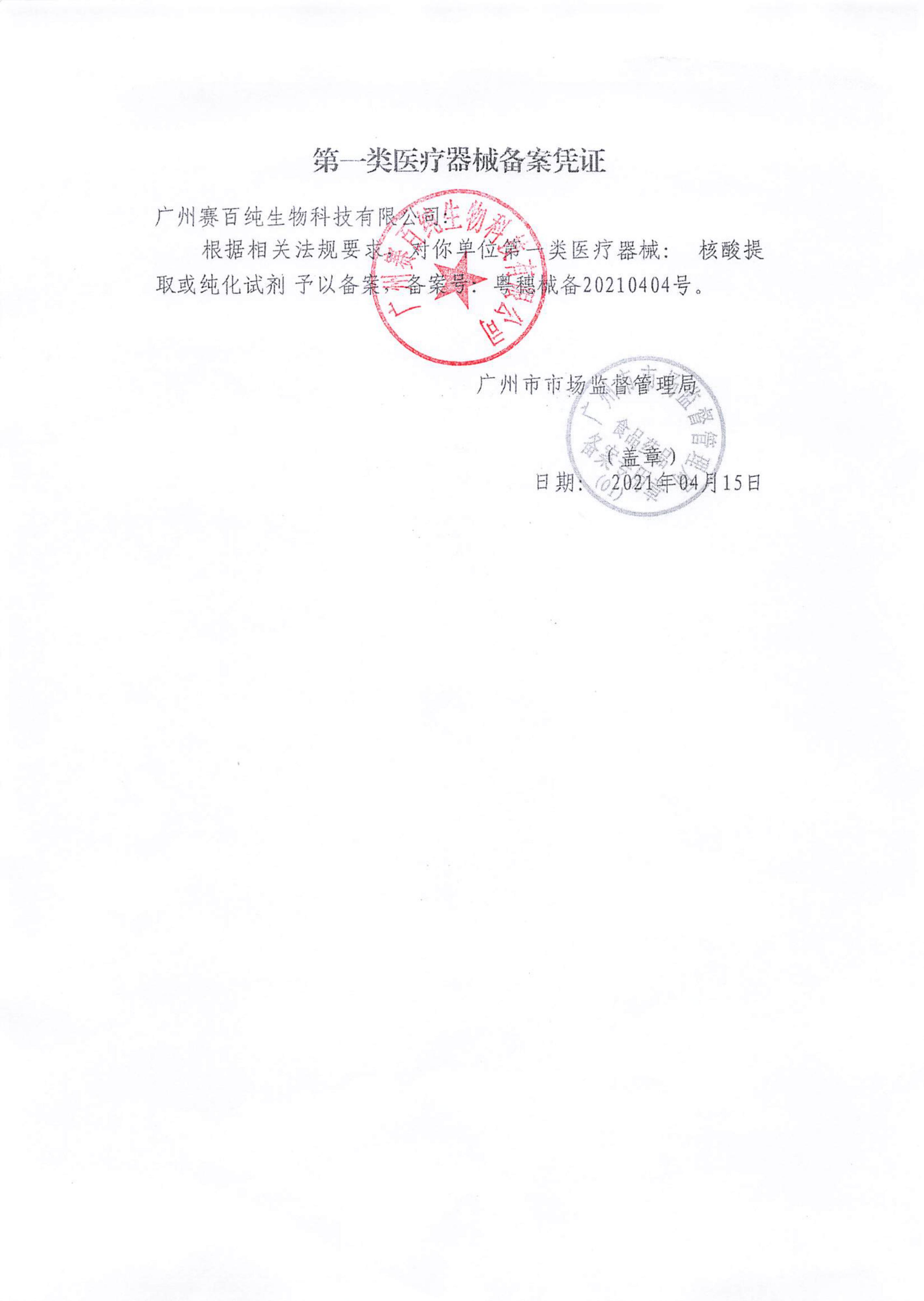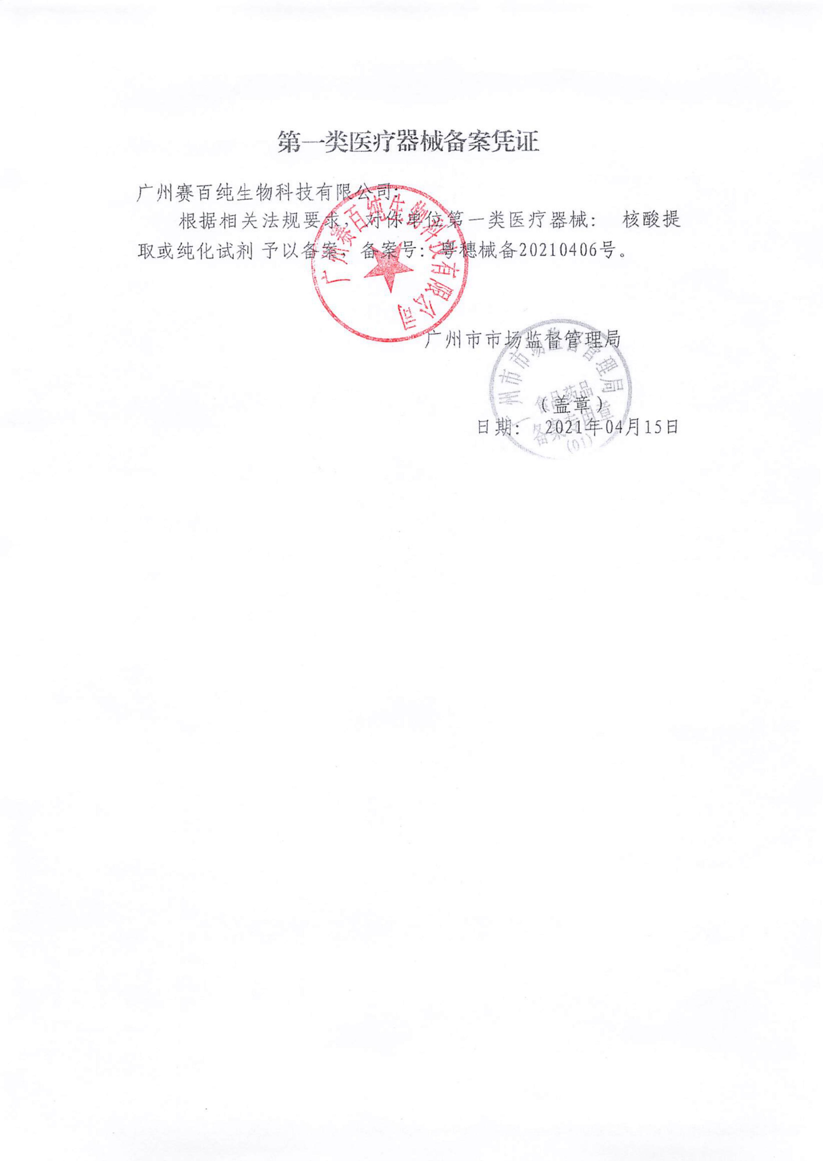 第一類醫療器械備案憑證