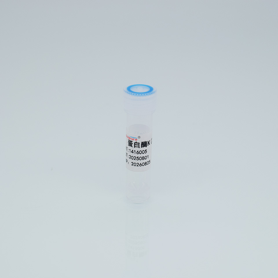 蛋白酶K(Proteinase K),相對(duì)分子量約為29.3 kDa, 是一種切割活性較廣的絲氨酸蛋白酶。可切割脂族氨基酸和芳香族氨基酸的羧基端肽鍵,應(yīng)用廣泛,可用于制備脈沖電泳的染色體DNA,蛋白質(zhì)印跡以及去除DNA和RNA制備中的核酸酶等實(shí)驗(yàn),蛋白酶K的一般工作濃度是50—100μg /ml。因蛋白酶K在變性劑如SDS(1%)中可提高其活性,所以在使用中,常根據(jù)所用緩沖液是否含有SDS、尿素、pH、溫度等因素確定具體的工作濃度。蛋白酶K在較廣的pH范圍內(nèi)(pH 4-12.5)均有活性。 蛋白酶K有兩個(gè)Ca2+結(jié)合位點(diǎn),它們離酶的活性中心有一定距離,與催化機(jī)理并無(wú)直接關(guān)系。然而,如果從該酶中除去Ca2+,由于出現(xiàn)遠(yuǎn)程的結(jié)構(gòu)變化,催化活性將喪失80%左右,但其剩余活性通常已足以降解在一般情況下污染核酸制品的蛋白質(zhì)。所以,蛋白酶k消化過(guò)程中通常也加入EDTA(以抑制依賴于mg2+的核酸酶的作用)。但是,如果要消化對(duì)蛋白酶k具有較強(qiáng)耐性的蛋白,如角蛋白一類,則可能需要使用含有1mmol/l Ca2+而不含EDTA的緩沖液。在消化完畢后、純化核酸前要加入EGTA(ph8.0)至終濃度為2mmol/l,以鰲合Ca2+。1416005