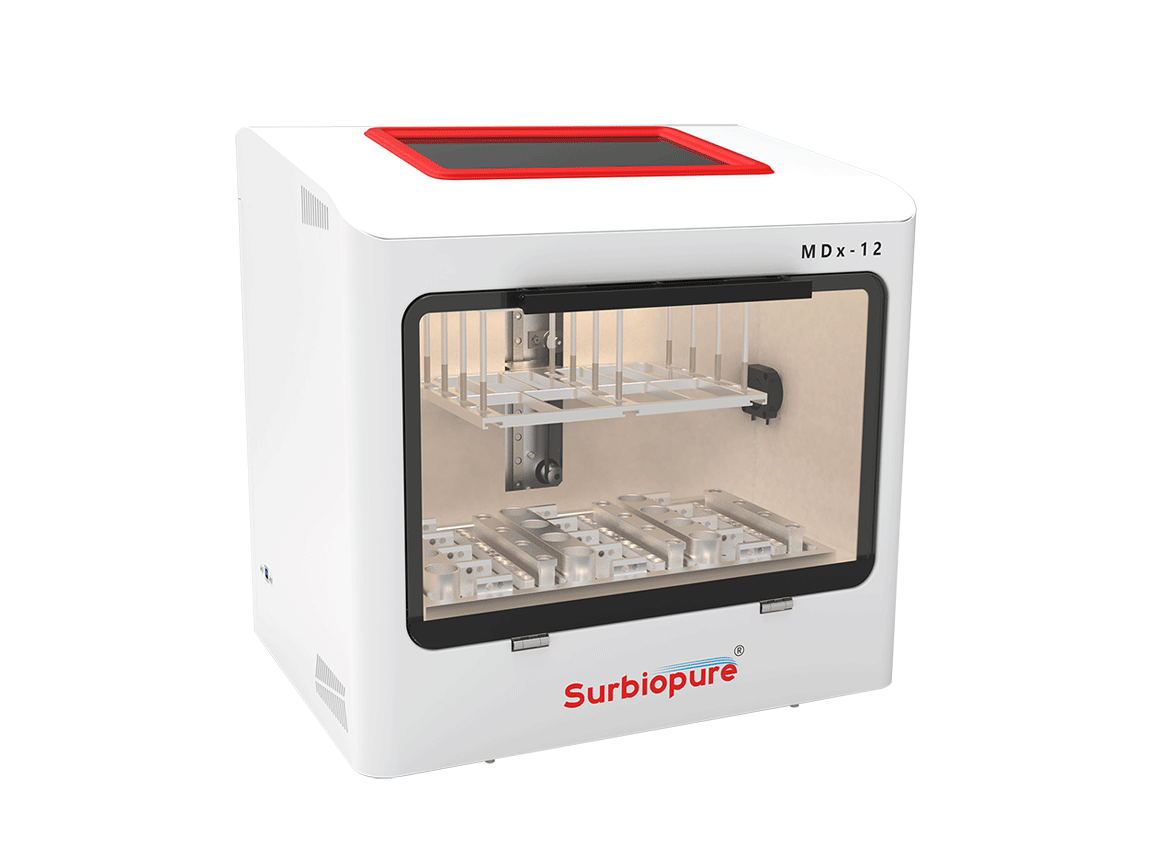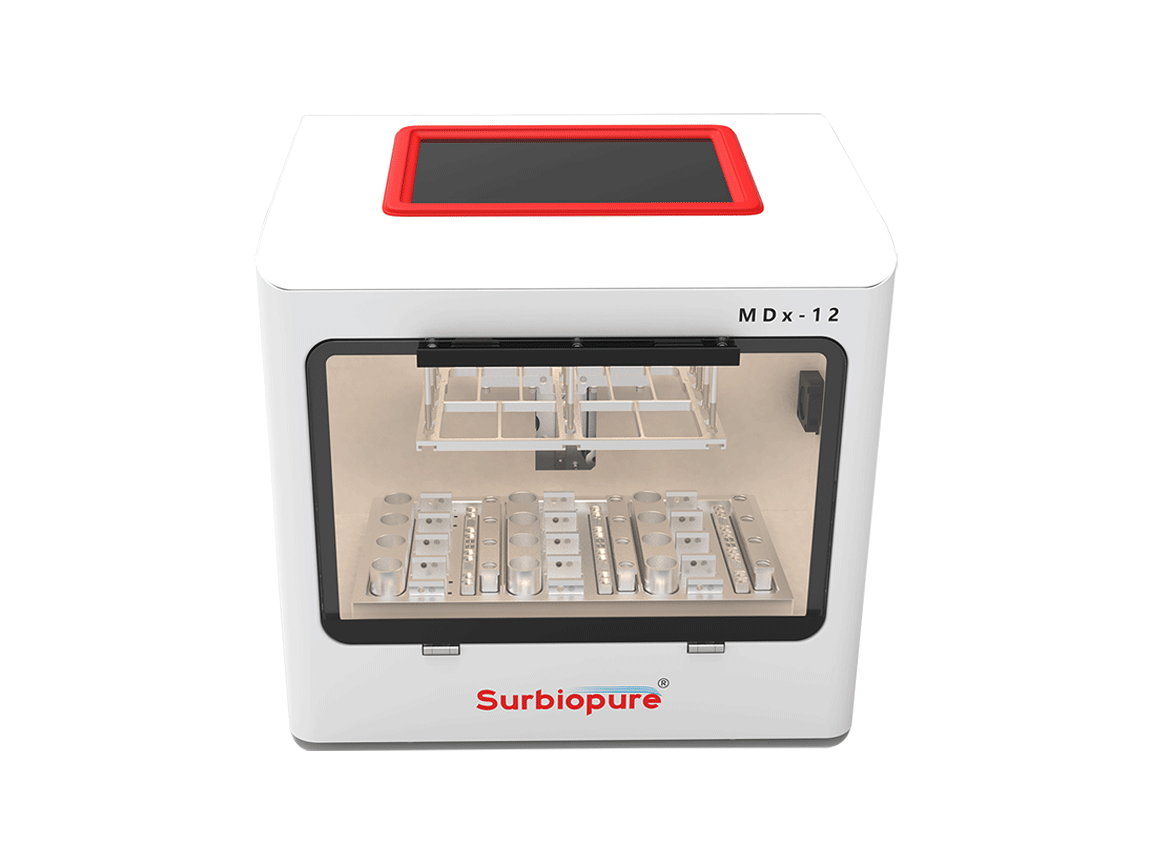 MDx-12全自動核酸提取儀,采用核酸純化和亞硫酸鹽轉化一站式自動化操作,可有效減少操作誤差,提高工作效率,廣泛用于分子診斷、臨床檢驗、疾病防控和分子生物學研究等領域。該設備可高效處理血液、尿液、拭子、糞便等樣本類型,從中分離純化甲基化DNA并完成亞硫酸鹽轉化,其產物可直接用于下游甲基化檢測。