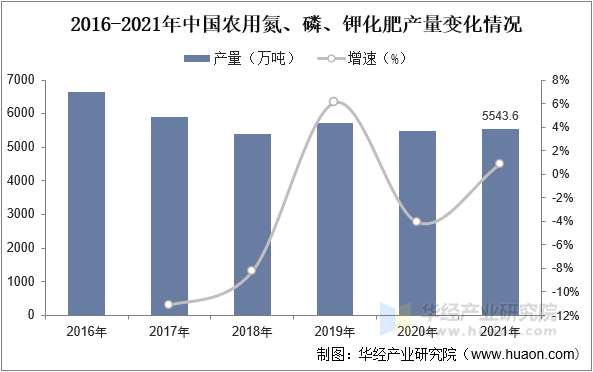 2015年中國農(nóng)業(yè)部發(fā)布《到2020年化肥利用零增加步履方案》,化肥行業(yè)成長回歸,行業(yè)運(yùn)營從體起頭升級轉(zhuǎn)型,加上行業(yè)產(chǎn)能過剩、優(yōu)惠政策退出、煤炭等原材料價錢上行等晦氣要素影響,化肥行業(yè)產(chǎn)量起頭持續(xù)下降,化肥企業(yè)紛紛起頭轉(zhuǎn)型升級。據(jù)材料顯示,2021年我國農(nóng)用氮、磷、鉀化肥產(chǎn)量為5543。6萬噸,同比增加0。9%。