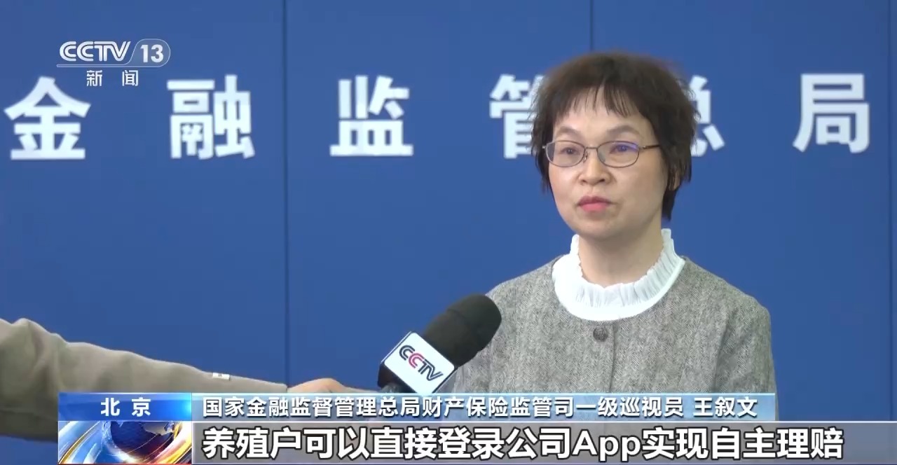 國度金融監視辦理總局財富安全監管司一級巡視員 王敘文:養殖戶能夠間接登錄公司App實現自從理賠,將理賠流程壓縮至最快10分鐘,從農戶報案到賠款到賬的處置時間正在1小時擺布,大大提拔了理賠效率和受災農戶對勁度。