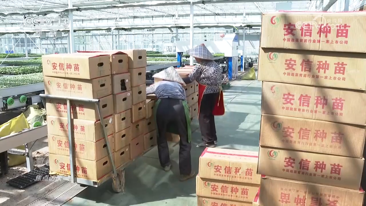 為了搶時節,正在浙江桐鄉的數字化育秧工場的育秧核心,工人們正忙著西瓜、甜瓜和番茄秧苗的打包拆運。
